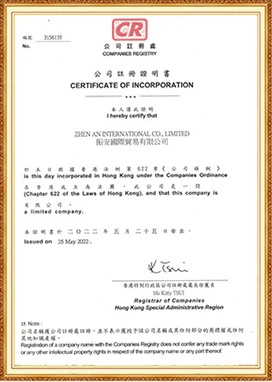 Tại ZhenAn Group, chất lượng, sự tuân thủ và tính chuyên nghiệp là nền tảng cho hoạt động của chúng tôi. Cam kết của chúng tôi đối với các tiêu chuẩn quốc tế và quy trình xuất sắc được công nhận thông qua một loạt các chứng nhận và danh hiệu trong ngành, mang đến cho các đối tác toàn cầu của chúng tôi sự tự tin và đảm bảo.